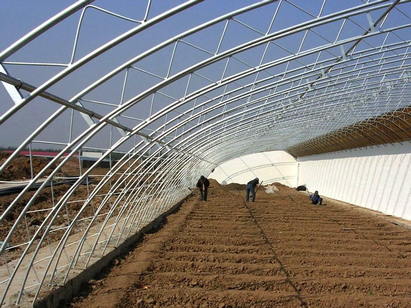 日光溫室是采用較簡(jiǎn)易的設(shè)施,充分利用太陽能,在寒冷地區(qū)一般不加溫進(jìn)行蔬菜越冬栽培,日光溫室的結(jié)構(gòu)各地不盡相同,分類方法也比較多。按墻體材料分主要有干打壘土溫室,磚石結(jié)構(gòu)溫室,復(fù)合結(jié)構(gòu)溫室等。按后屋面長度分,有長后坡溫室和短后坡溫室;按前屋面形式分,有二折式,三折式、拱圓式、微拱式等。按結(jié)構(gòu)分,有竹木結(jié)構(gòu)、鋼木結(jié)構(gòu)、鋼筋混凝土結(jié)構(gòu)、全鋼結(jié)構(gòu)、全鋼筋混凝土結(jié)構(gòu)、懸索結(jié)構(gòu),熱鍍鋅鋼管裝配結(jié)構(gòu)。